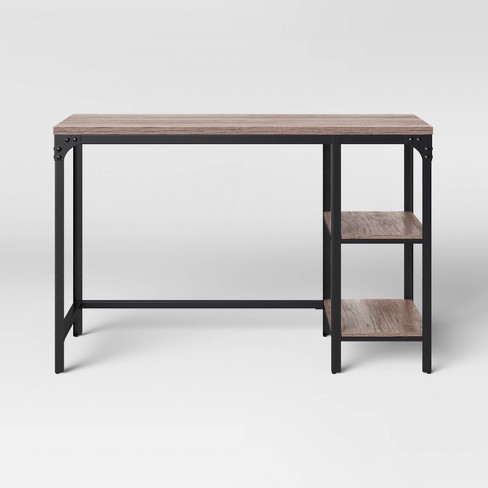 Featuring a sturdy metal frame with a matte black finish and an espresso brown top this versatile storage desk can be placed anywhere from your den to your entryway.